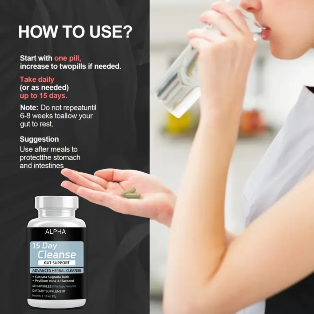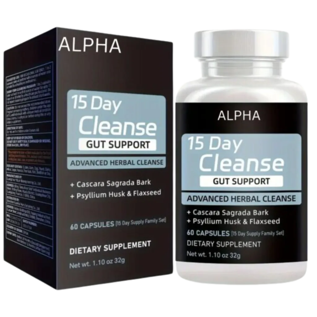 15 Day Gut Cleanse Capsules – Advanced Herbal Supplement with Cascara Sagrada, Psyllium Husk, and Flaxseed – Supports Intestinal Health and Cleansing – 60 Capsules