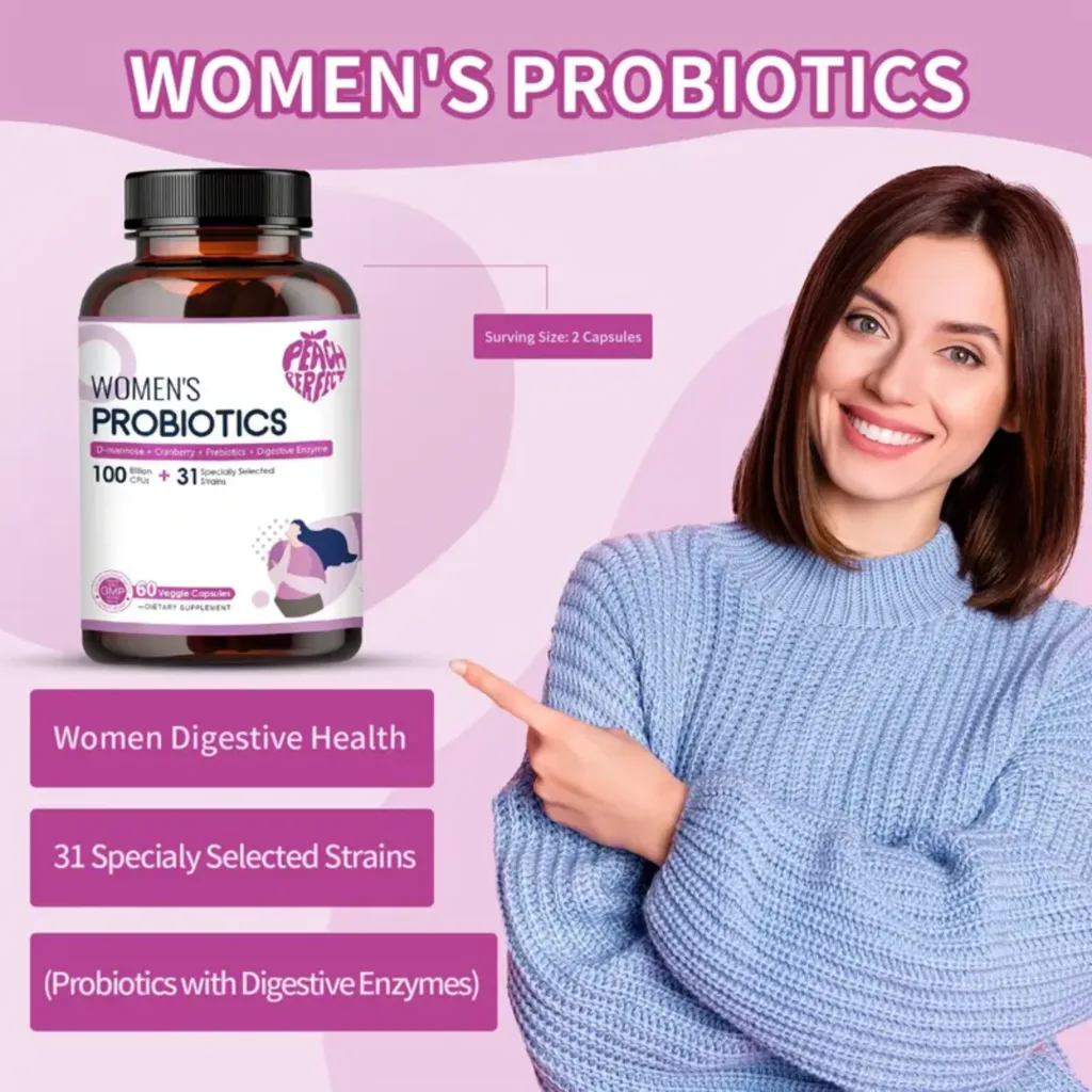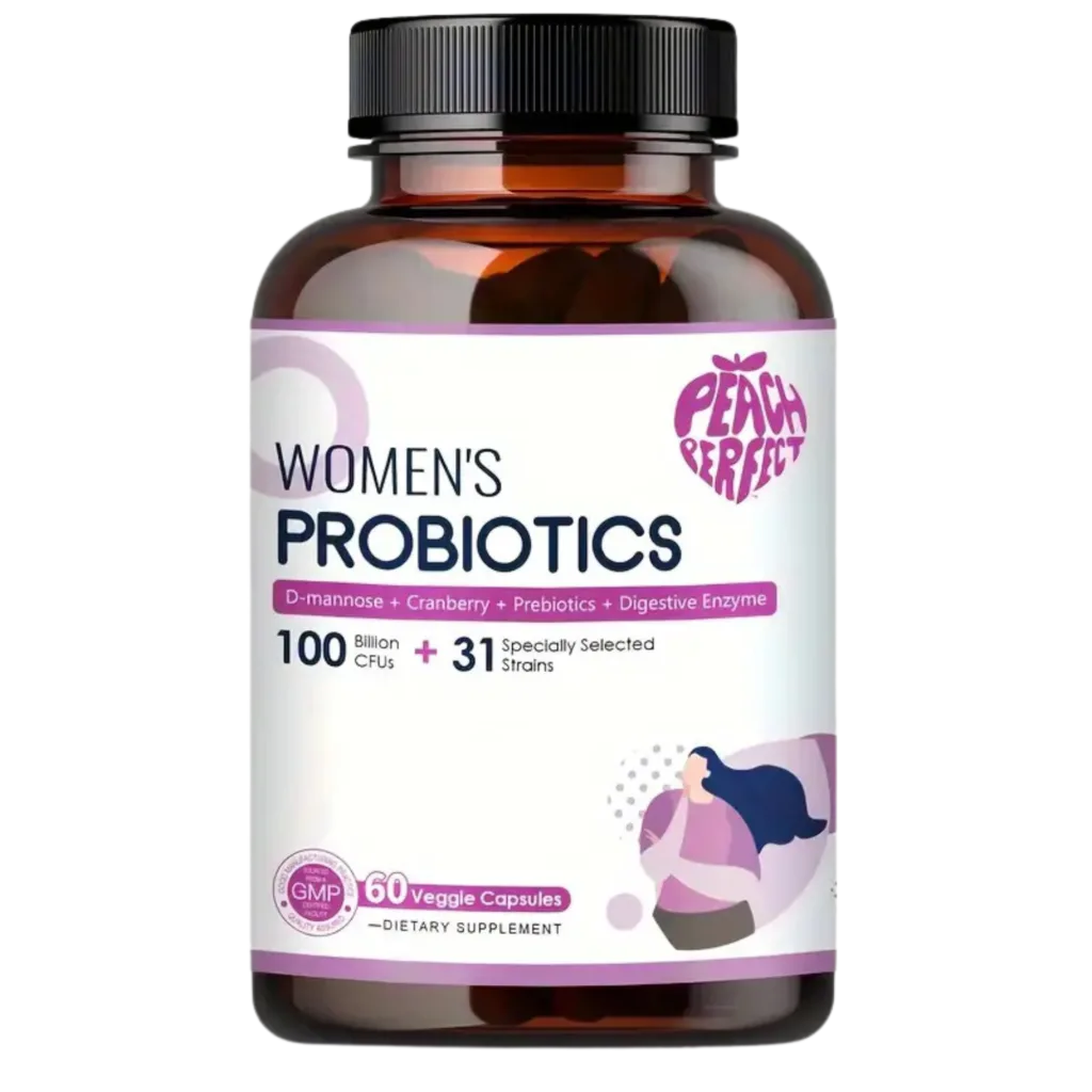 Peach Perfect Women’s Probiotics – 100 Billion CFUs, 31 Strains, with D-Mannose, Cranberry, Prebiotics & Digestive Enzymes – Supports Digestive, Urinary, and Immune Health – 60 Veggie Capsules