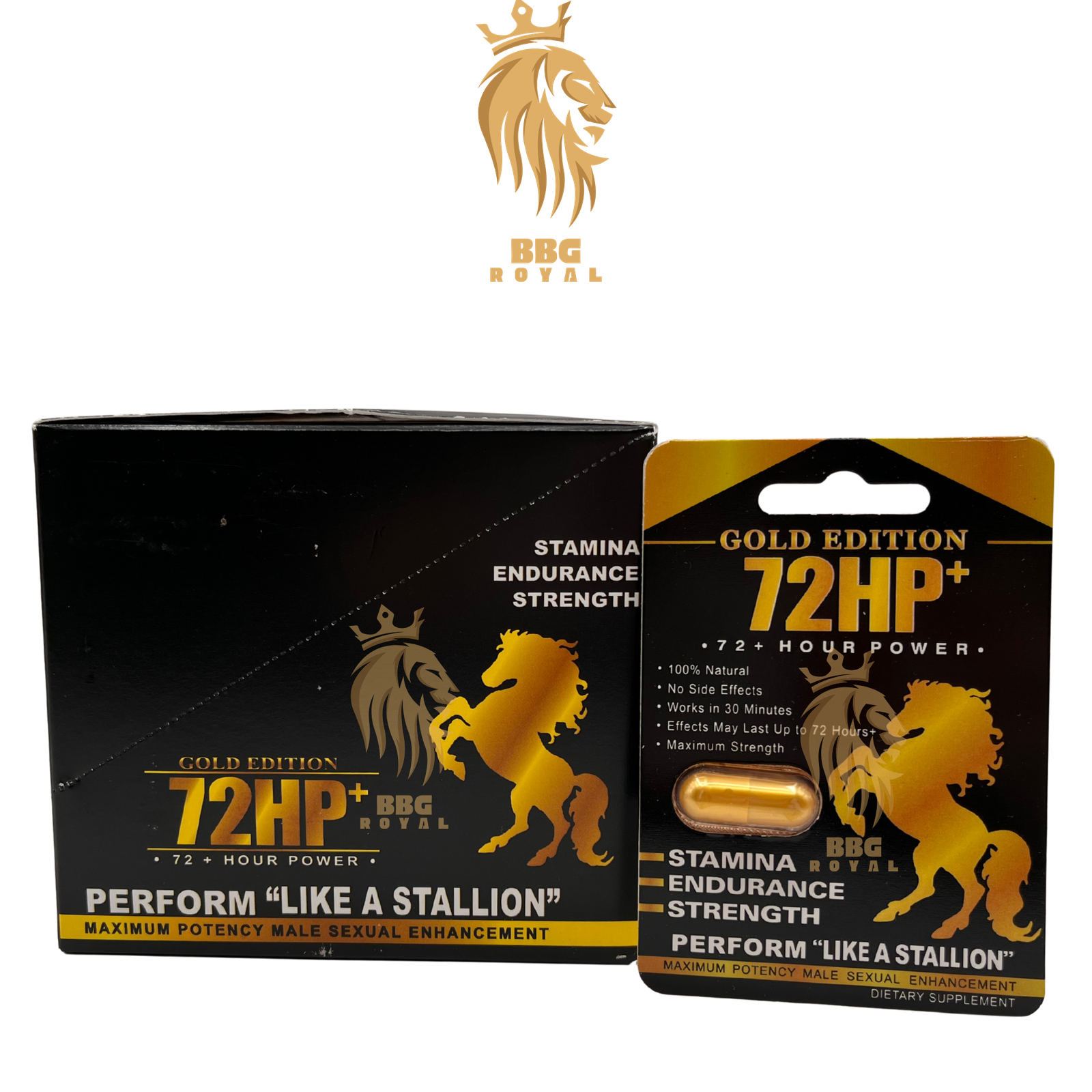 72HP Gold Edition is designed for quick, reliable support in a simple single-capsule dose. Each capsule begins working in about 30 minutes and is crafted to deliver steady, long-lasting effectiveness. The compact black-and-gold blister pack is easy to carry, discreet, and ideal for convenient use anytime. Each box contains 24 individually sealed single-dose packs.