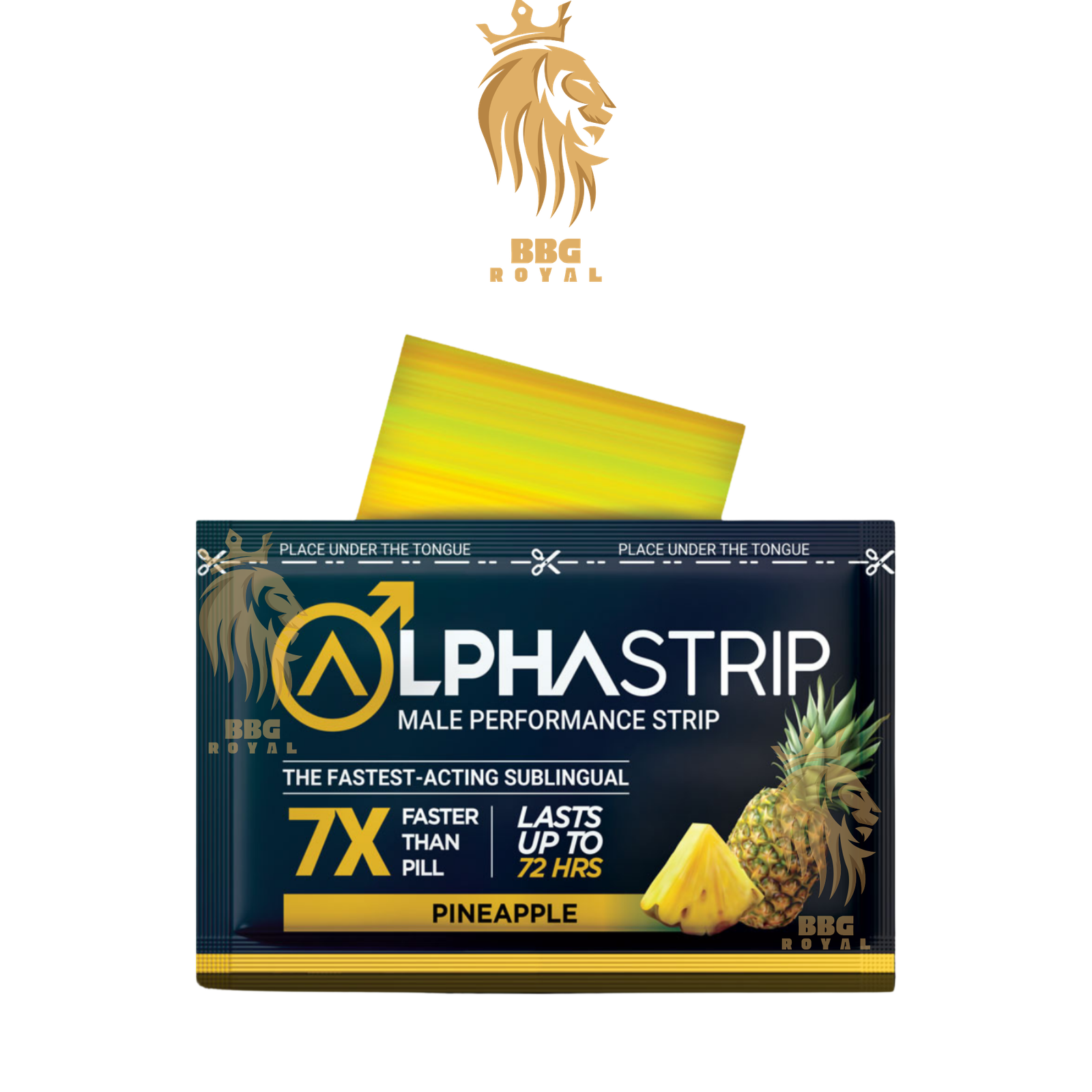 Experience peak performance with AlphaStrip, the fastest-acting sublingual strip designed for men. Infused with a refreshing Pineapple flavor, this innovative strip dissolves instantly under the tongue and begins working in moments — 7X faster than traditional pills.