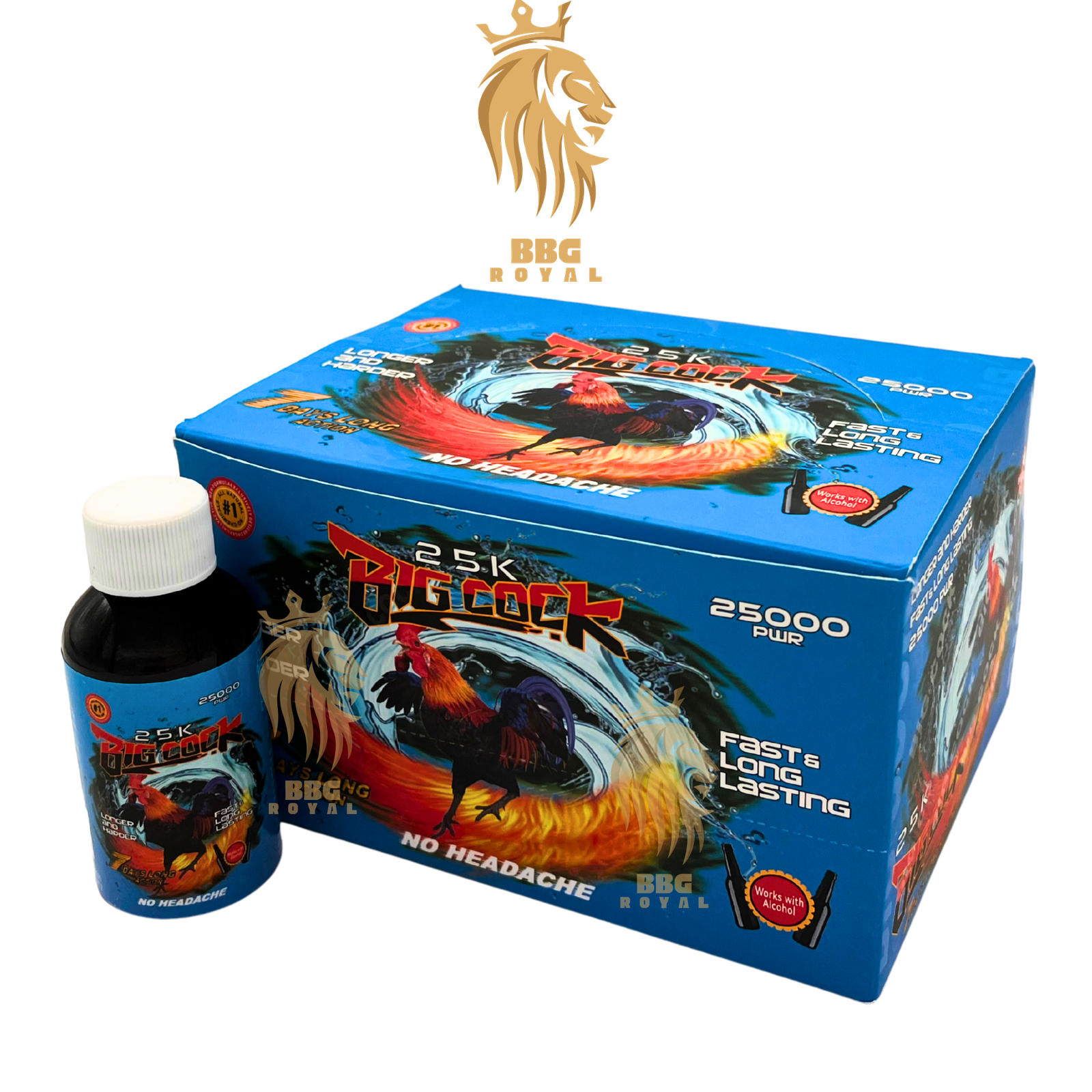 Big Cock 25K is a high-strength male enhancement drink formulated for fast, long-lasting performance support. Designed with a bold rooster theme and vibrant blue packaging, this 2oz shot delivers strong effects, quick absorption, and a reliable no-headache blend. Customers love its powerful kick, long duration, and eye-catching presentation.