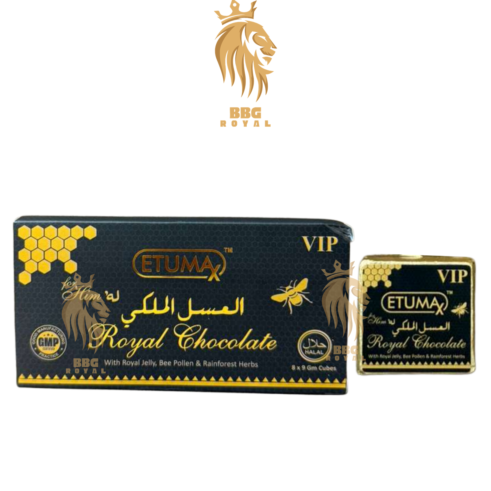 ETUMAX VIP Royal Chocolate with Royal Jelly & Bee Pollen | Premium Dark Chocolate Cubes | 8 x 9g