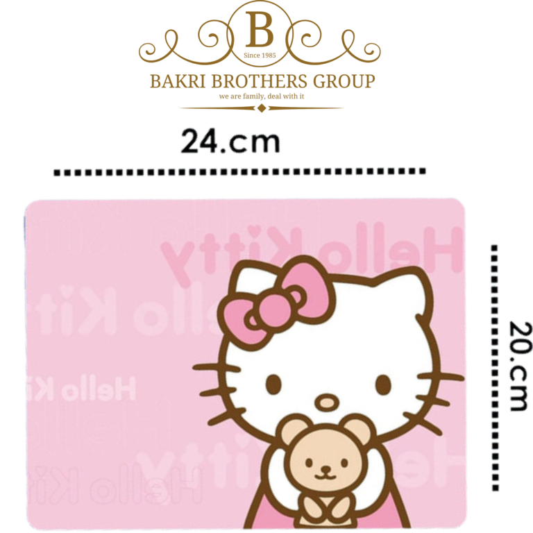 Enhance your desk with the charming Hello Kitty Pink Mouse Pad, adorned with a cute Hello Kitty and teddy bear design. Perfect for adding a touch of whimsy to your workspace, this mouse pad offers both style and functionality. Its dimensions of 24 cm by 20 cm provide ample space for smooth mouse movement, while the non-slip backing ensures it stays in place during use. The durable, soft fabric top is comfortable under your hand, reducing wear on your mouse and improving tracking. Ideal for office, home, or gaming setups, this Hello Kitty mouse pad is a delightful addition for fans and anyone who loves a playful touch in their workspace.