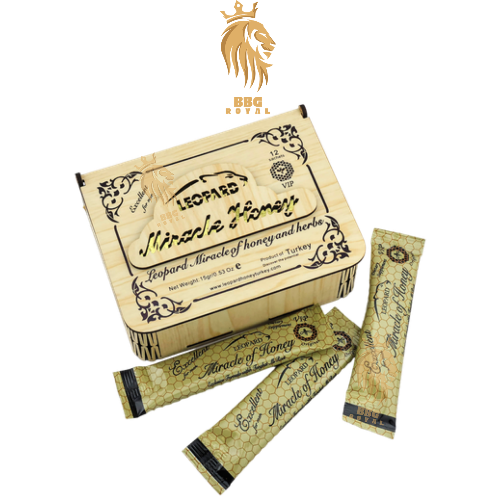 Leopard Energy Honey – RL Jelly, Bee Pollen & Natural Mixed Herbs (Pack of 12) | Wooden Box