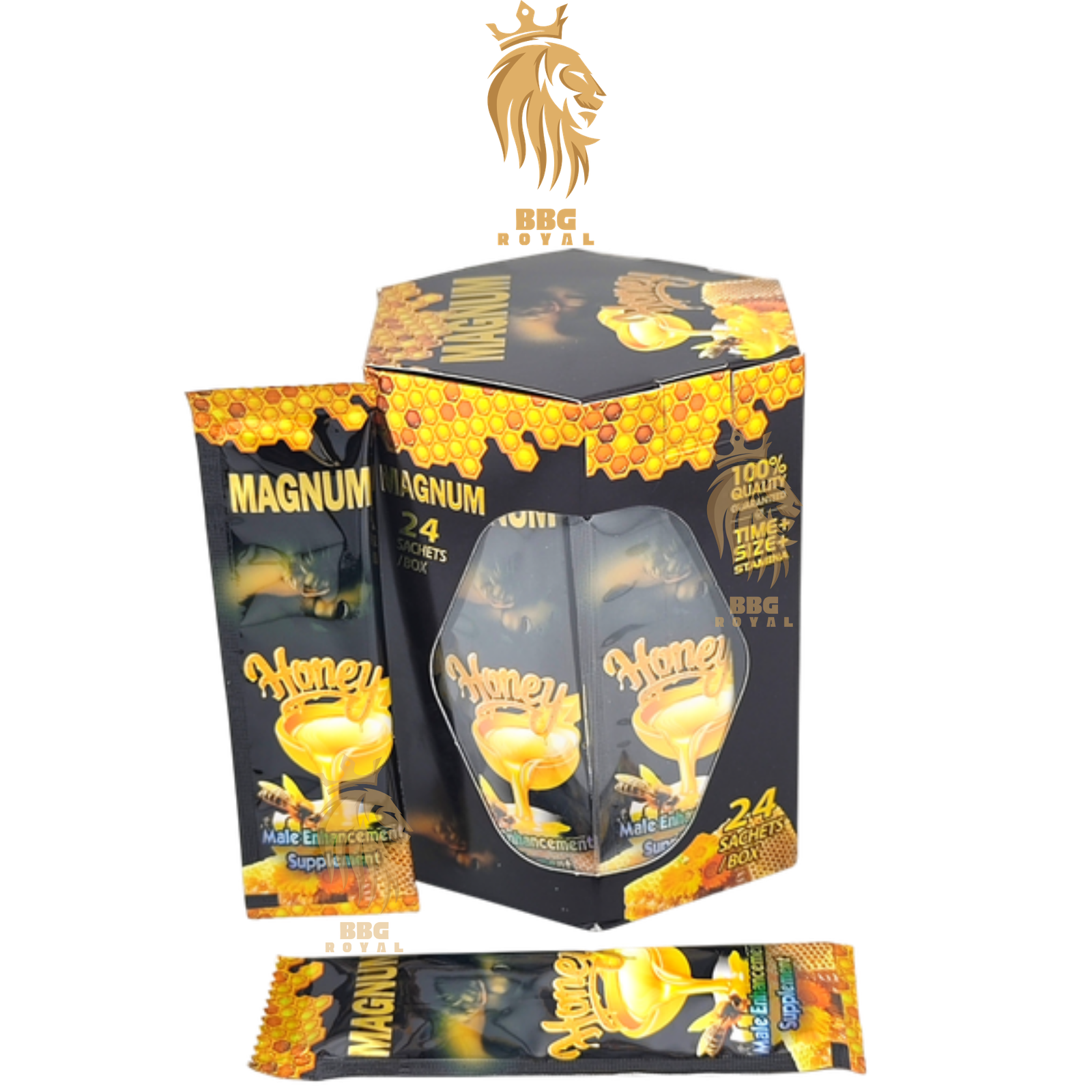 Experience the powerful blend of natural honey and premium herbal extracts with Magnum Honey. Each box contains 24 convenient sachets, crafted for customers looking to boost their energy, maintain stamina, and feel more confident when they need it most.