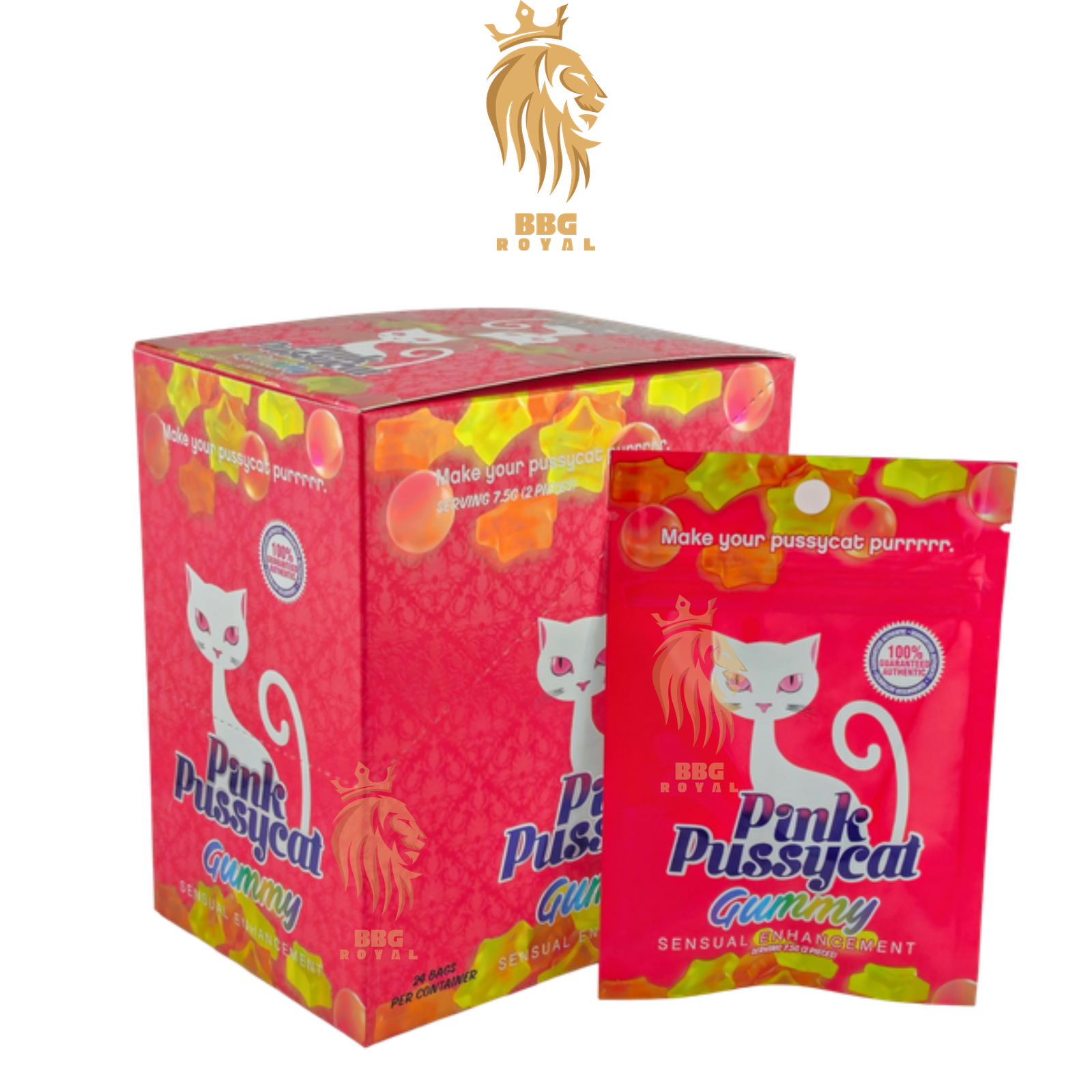 Pink Pussycat Gummy is a premium sensual enhancement supplement designed to heighten arousal, enhance intimacy, and elevate confidence. With a delicious gummy format, this product offers a convenient and enjoyable way to boost energy and desire naturally. Each box contains 24 gummies, providing long-lasting satisfaction and support for intimate moments. Make your experience unforgettable with Pink Pussycat Gummy – “Make your pussycat purr!