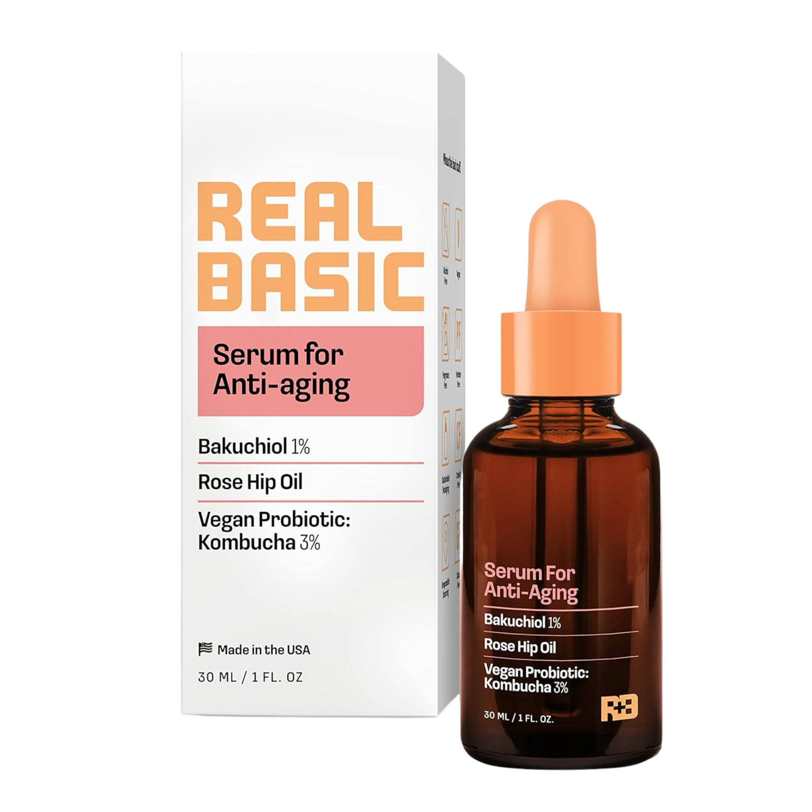 Real Basic Anti-Aging Serum 30ml – Bakuchiol 1% + Rosehip Oil + Vegan Probiotic Kombucha 3%