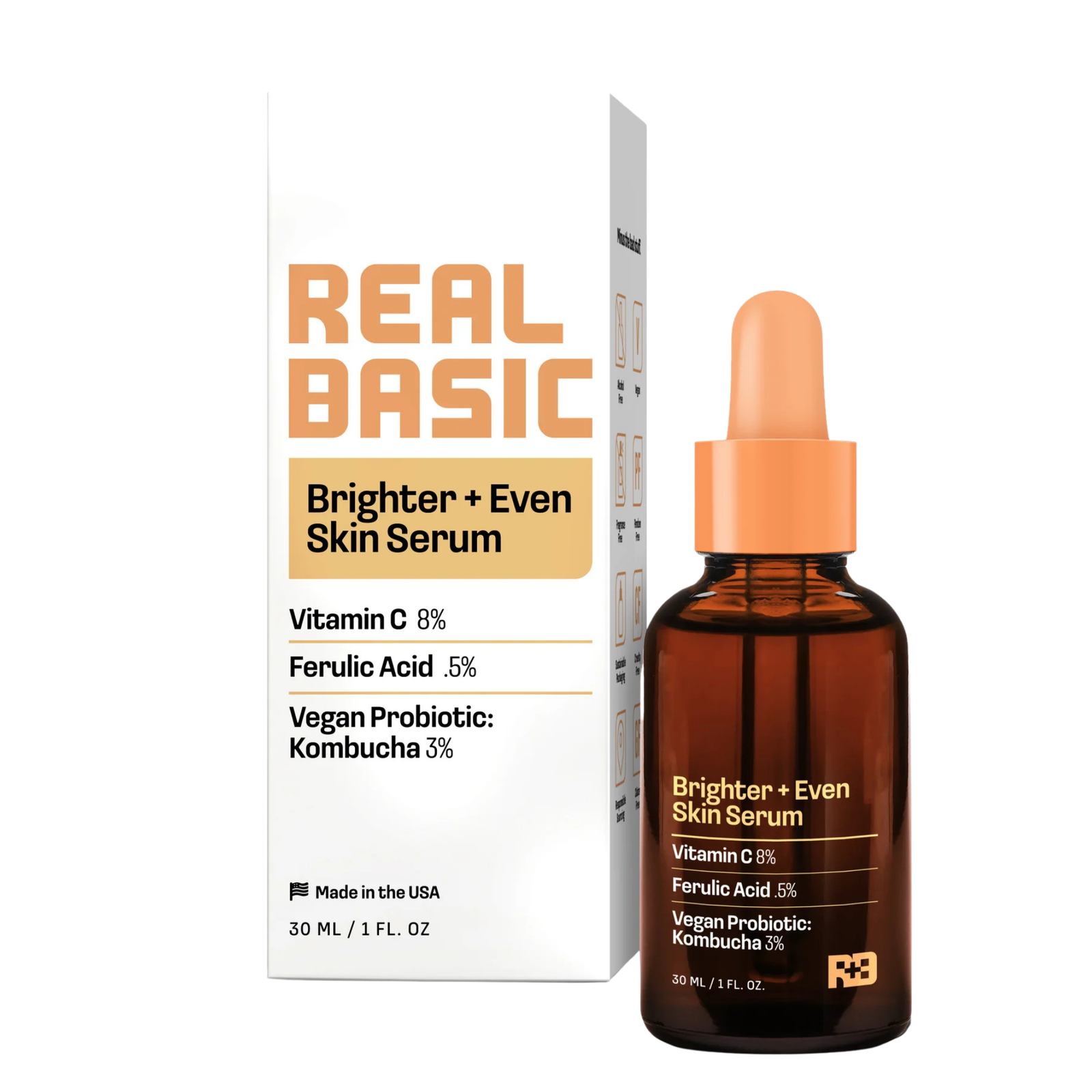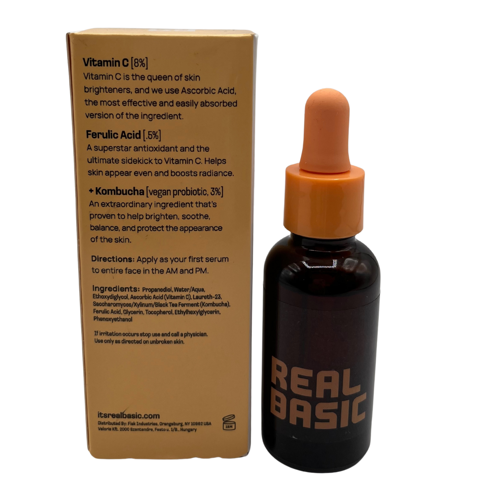 Real Basic Brighter + Even Skin Serum 30ml – Vitamin C 8% + Ferulic Acid 0.5% + Vegan Probiotic Kombucha 3%