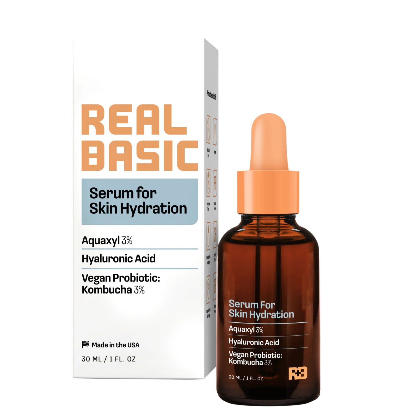 Real Basic Hydrating Serum 30ml – Aquaxyl 3% + Hyaluronic Acid + Vegan Probiotic Kombucha 3%
