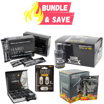 Hard Steel Bulk Deal: 12 Honey Sachets, 12 Shots Bottles, Choco 12 Pcs, Triple Capsules, and Hard Steel Gummies 24 Bags