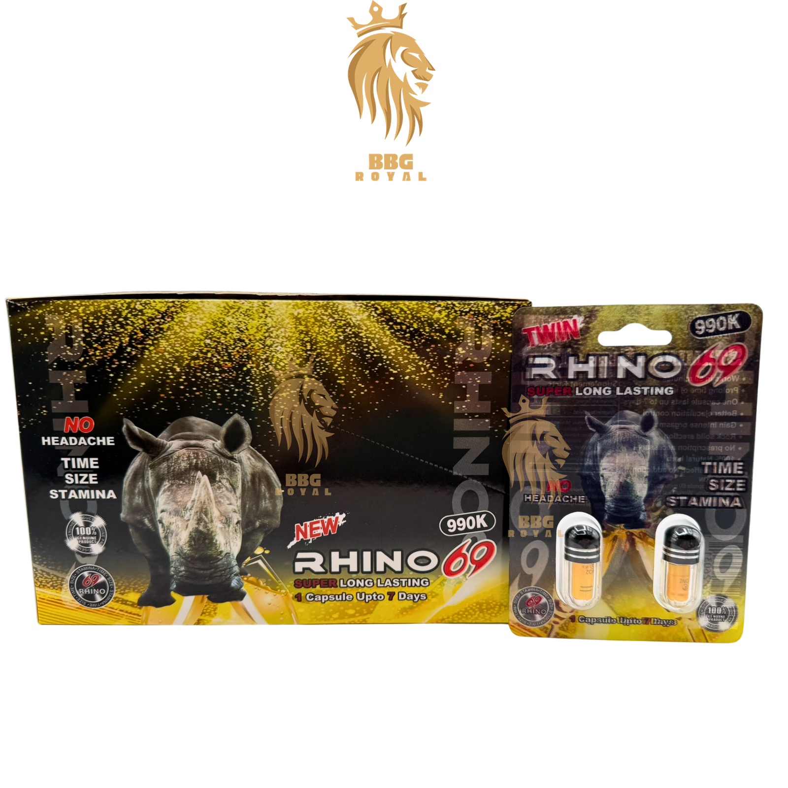 Rhino 69 990K Capsules are packaged in a twin (double) format, providing two capsules per card for added value and convenience. Each unit is individually sealed in blister packaging to maintain freshness and ensure easy handling.