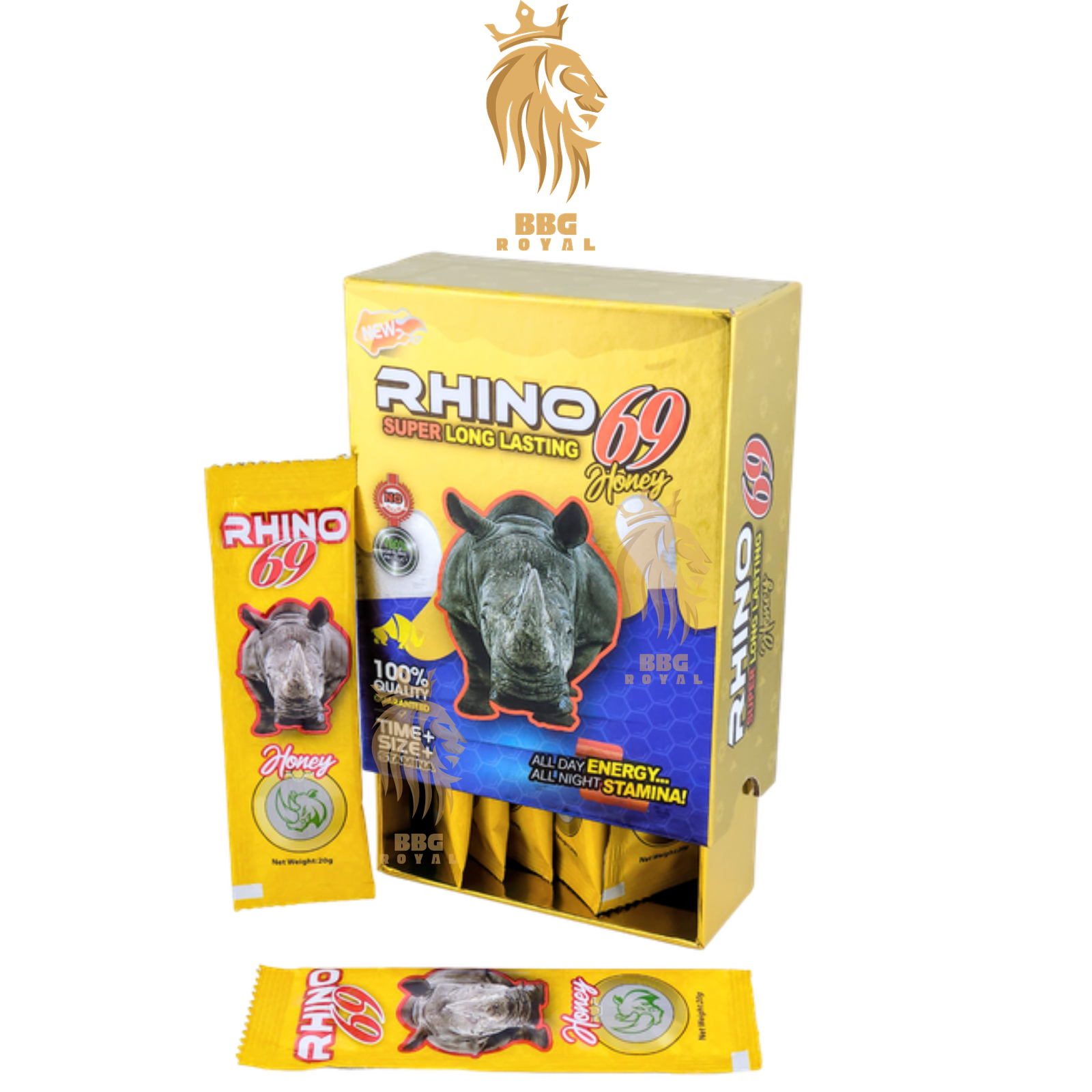 Rhino 69 Honey Gold | Natural Energy Support | 12 Sachets Hard Box