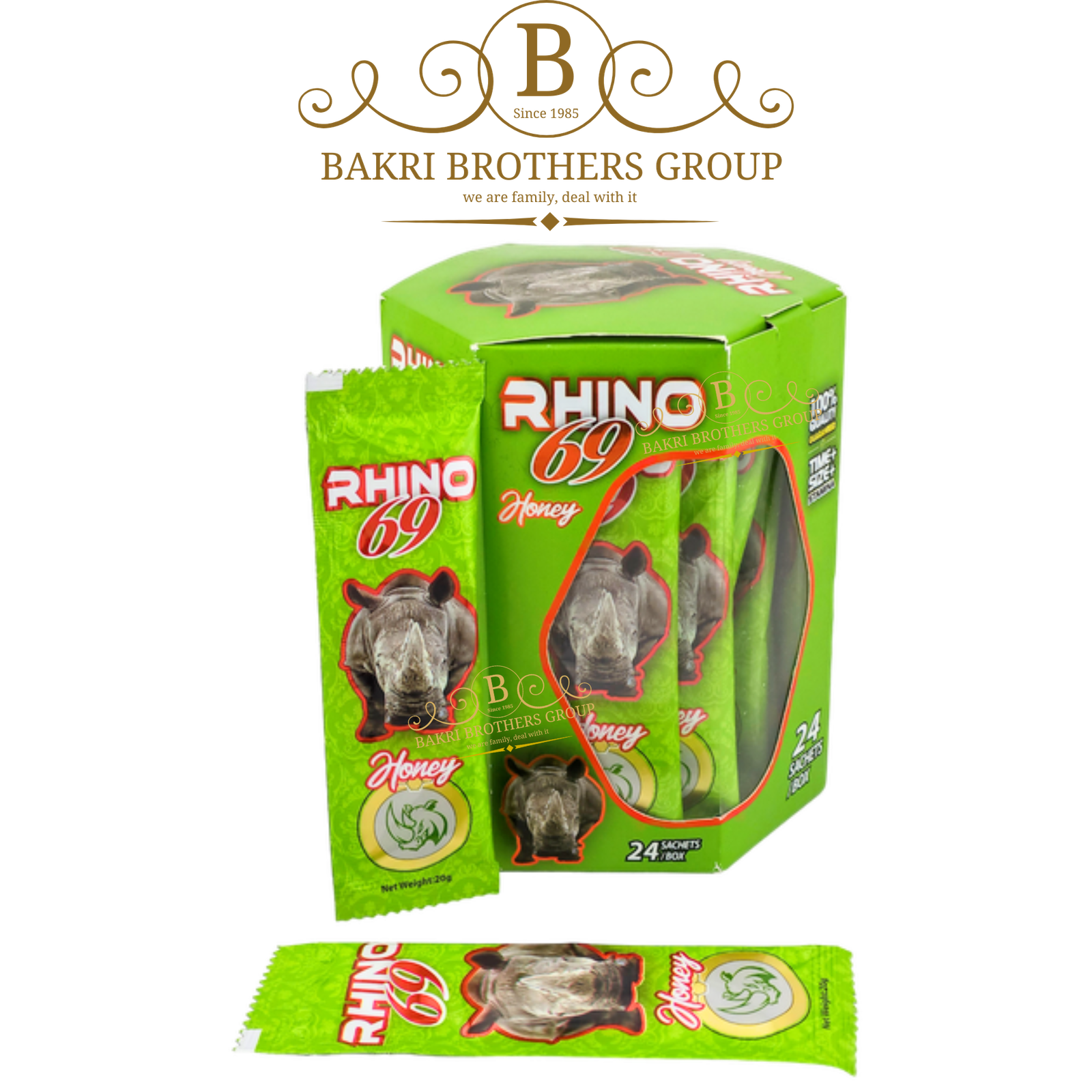 Rhino 69 Honey Green – Premium Herbal Honey Blend | 24 Sachets Box | Extra Energy Support