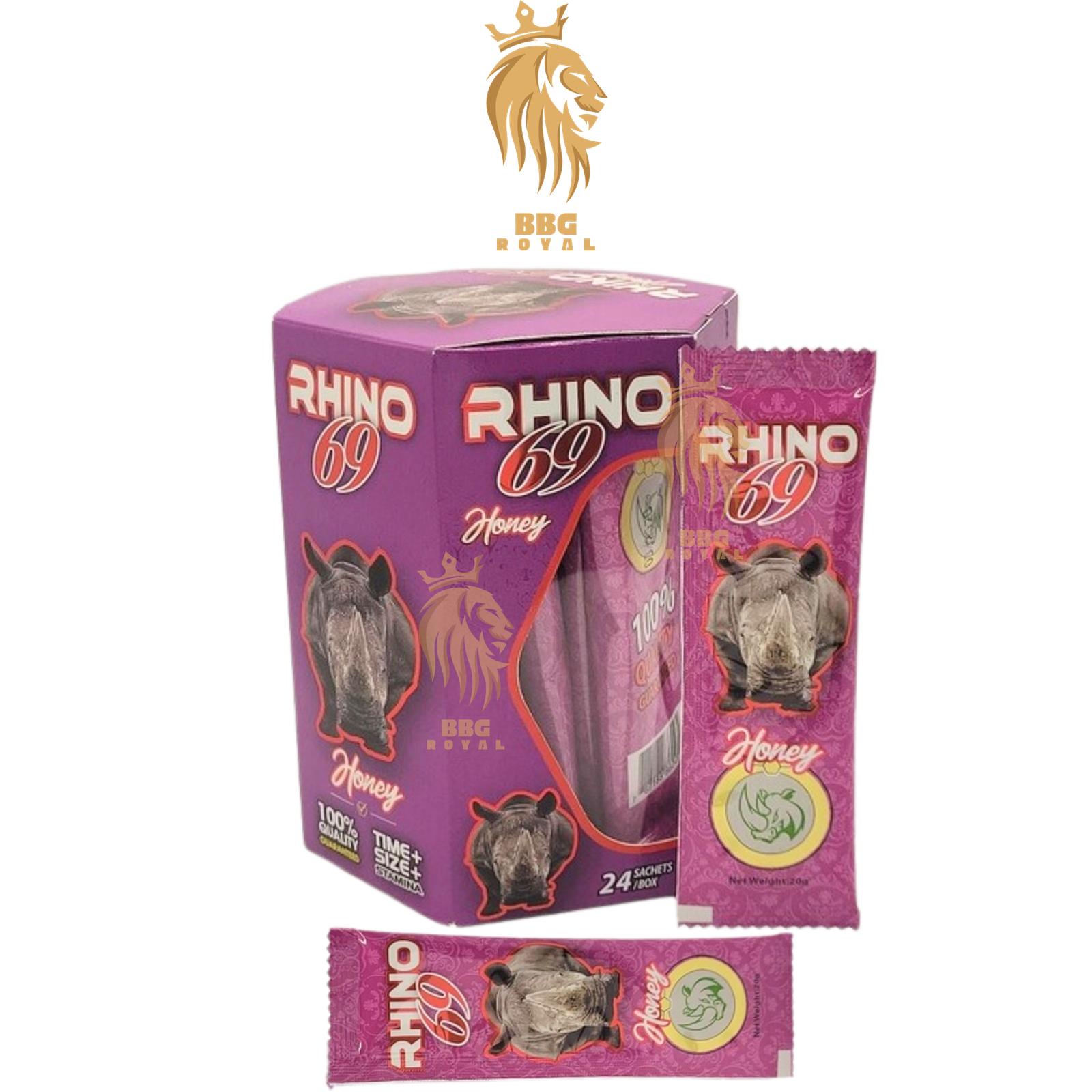 Rhino 69 Honey Purple | Advanced Herbal Honey Blend | 24 Sachets Hexagon Box