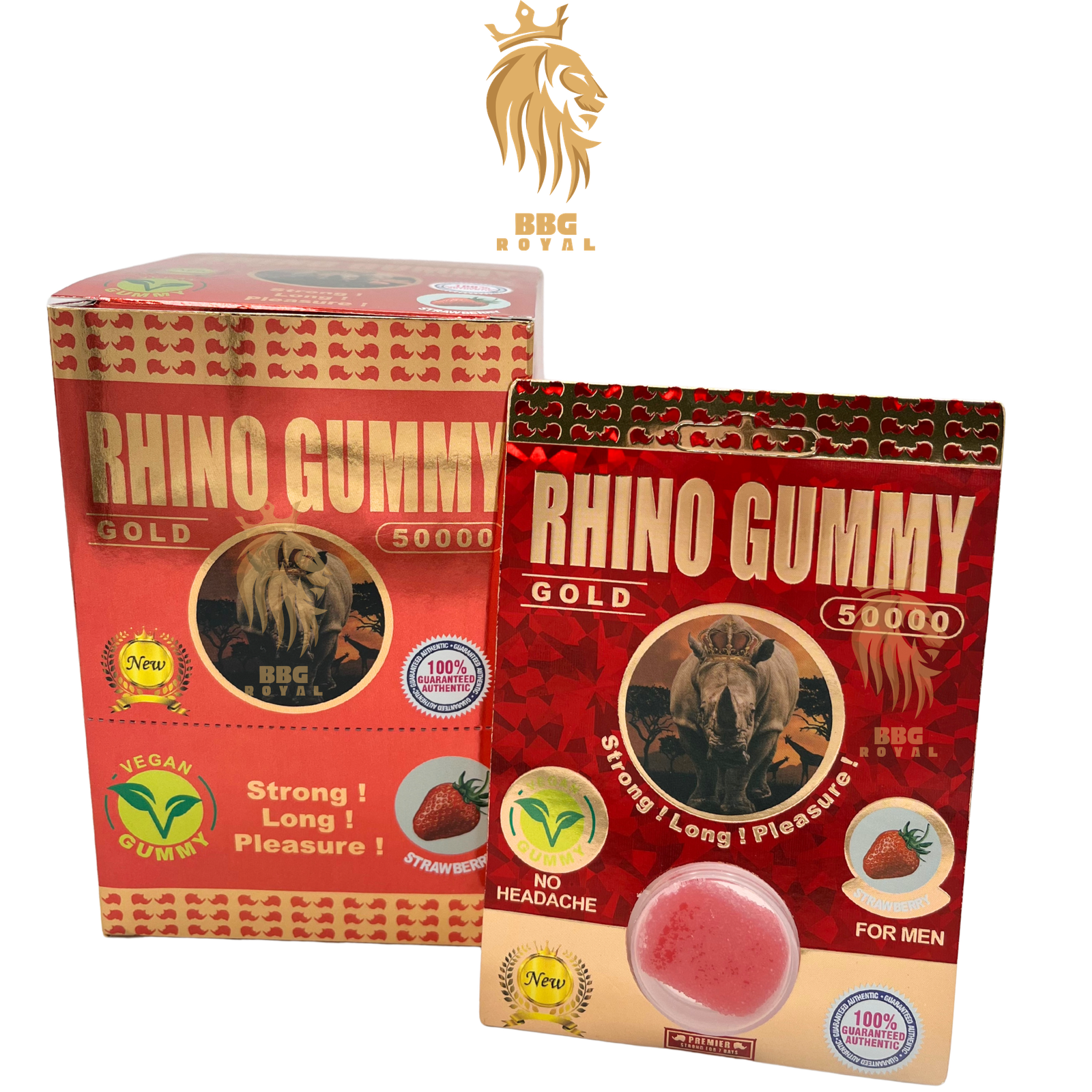 Experience Rhino Gummy Gold 50000 — a premium single-dose gummy crafted for men seeking a stronger, longer, and more satisfying performance. Each card contains one vegan strawberry-flavored gummy, made with high-quality ingredients and designed for smooth, reliable results without discomfort.