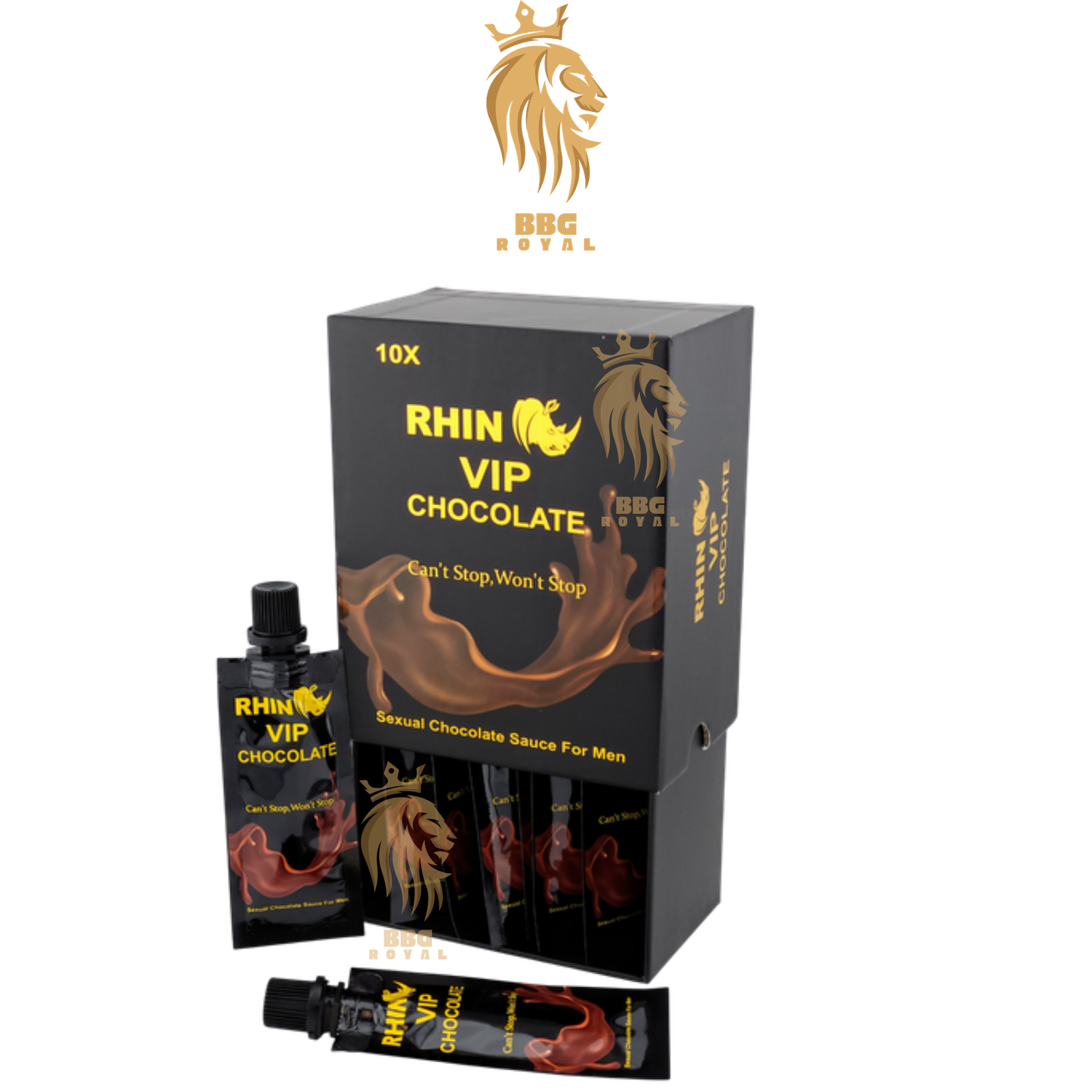 Rhino VIP Chocolate Sexual Sauce for Men – 10X Pack (10 Sachets, 15g Each) – Boosts Performance & Pleasure