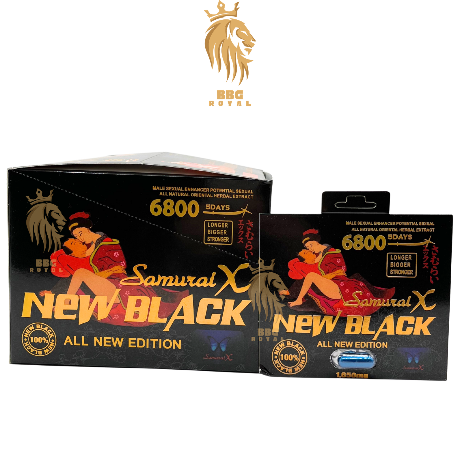 Unleash your inner strength and vitality with Samurai X New Black 6800, a high-potency male enhancement supplement crafted with all-natural oriental herbal extracts. This new edition formula is designed to increase size, stamina, and performance, delivering longer, bigger, and stronger results. Each capsule provides up to 5 days of lasting effects, ensuring enhanced endurance and peak satisfaction. Each box contains 24 single-dose pills, offering consistent support for long-term performance.