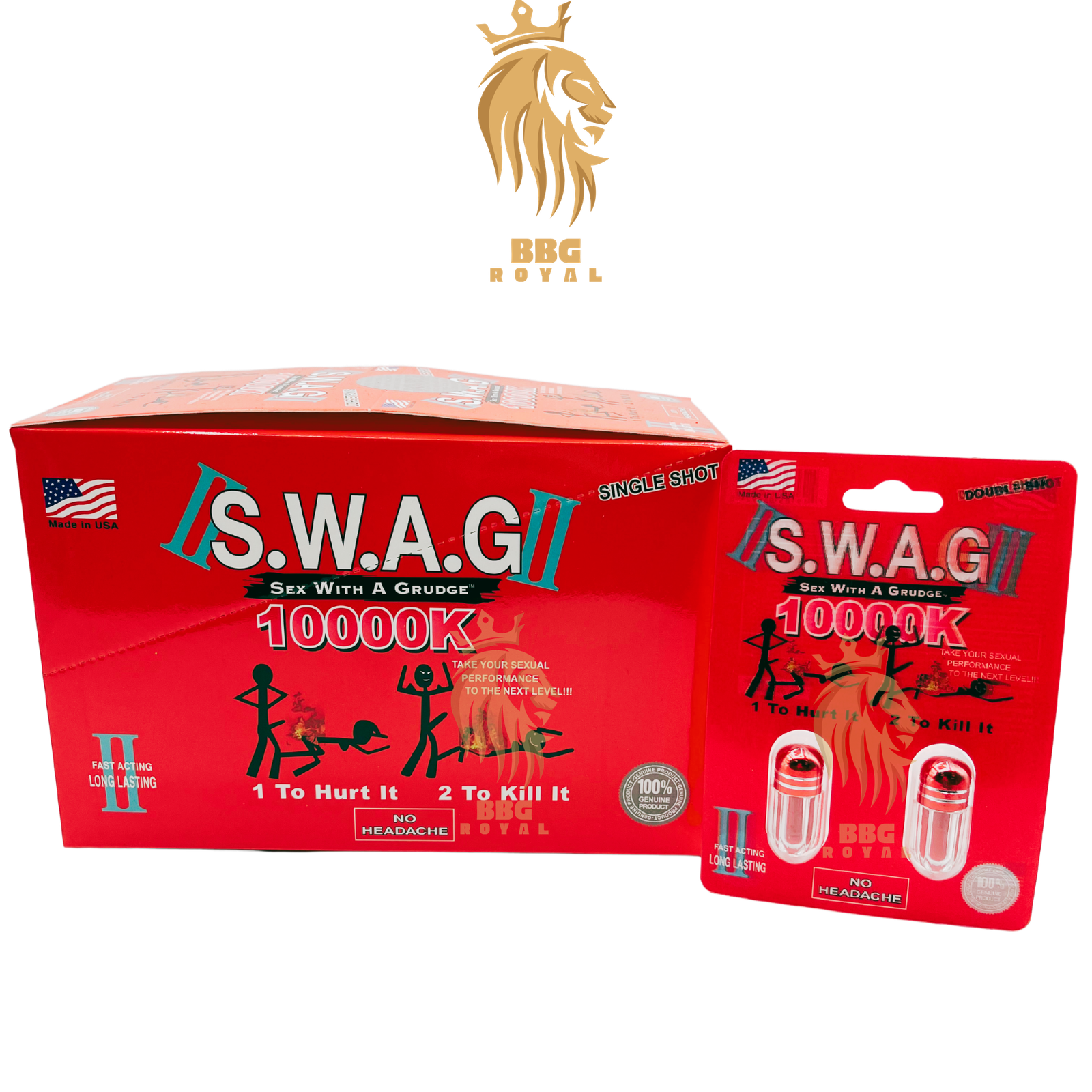 Take your performance to the next level with S.W.A.G II 10000K (Sex With A Grudge), a high-powered male enhancement supplement designed to maximize stamina, endurance, and pleasure. This double-shot formula provides fast-acting and long-lasting effects, ensuring peak performance and confidence without headaches. Each box contains 24 packs, with 2 pills per pack (48 pills total), delivering continuous support for strength, energy, and satisfaction.