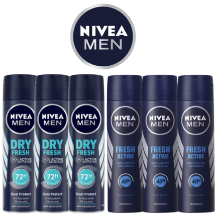 NIVEA Men Deodorant Spray – Dry Fresh & Fresh Active Variety Pack (6-Pack, 150ml Each)