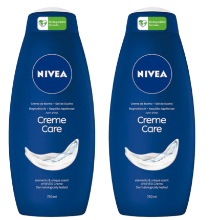 NIVEA Creme Care Shower Cream for Adults, 750 ml, 2-Pack, Biodegradable Formula, Dermatologically Tested