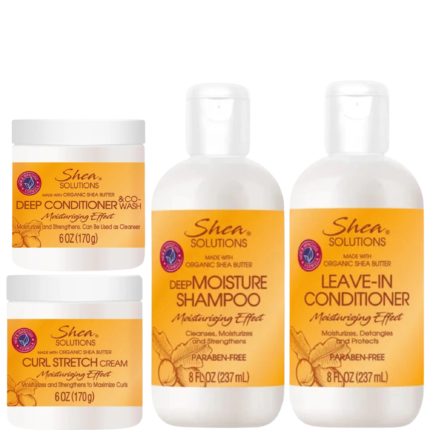 Shea Solutions Deal |Deep Moisture Shampoo + Leave-In Conditioner + Deep Conditioner + Curl Stretch Cream |4 Pcs per Pack