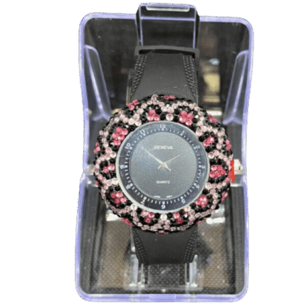 BBG Women’s Watch with Tiger Pattern Lining, Black Color, 1 Pc per Pack