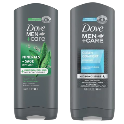 DOVE MEN + CARE Reviving Minerals & Sage & Clean Comfort Body and Face Wash, 13.50 Oz Each (Pack Of 2).