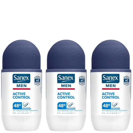 Sanex Men ACTIVE CONTROL antiperspirant roll-on, Pack of 3