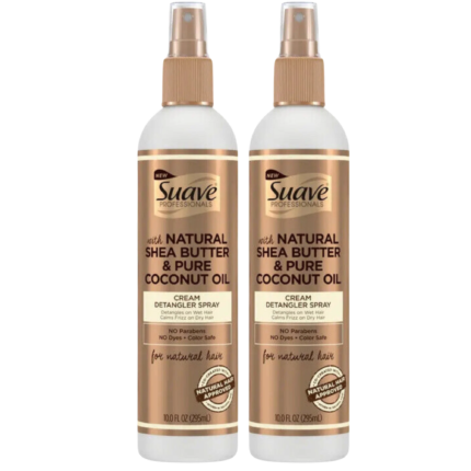 Suave Professionals Detangler Spray with Shea Butter & Coconut Oil, 10 fl oz each, for all hair types, 2-pack